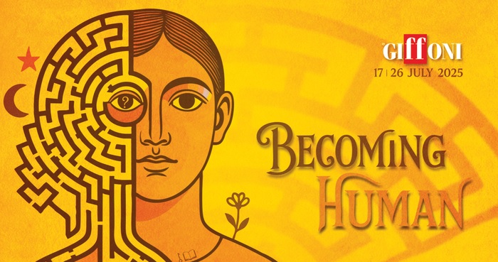 L’immagine ufficiale del 2025 – Becoming Human, diventare umani, realizzata dal direttore creativo di Giffoni, Luca Apolito – è una soglia visiva. “Un volto – si spiega in una nota – giovane e antico al tempo stesso, diviso in due. Da un lato, l’identità riconoscibile, l’occhio limpido, un germoglio che cresce dalla spalla, un sole, un fiore, i segni di vita, calore e possibilità. Dall’altro lato, la vertigine di un percorso irregolare. Un labirinto si snoda come il pensiero quando cerca, si perde, si interroga. Lo schema del labirinto rende il volto incompleto per evocare la complessità dell’identità individuale, ma anche per ricordare che ogni percorso personale – con le sue esigenze, i suoi ritmi, le sue scelte – deve intrecciarsi con una storia più grande, quella collettiva, fatta di legami, memoria, responsabilità condivise. Diventare umani non è solo un fatto intimo, è anche un atto di appartenenza”.