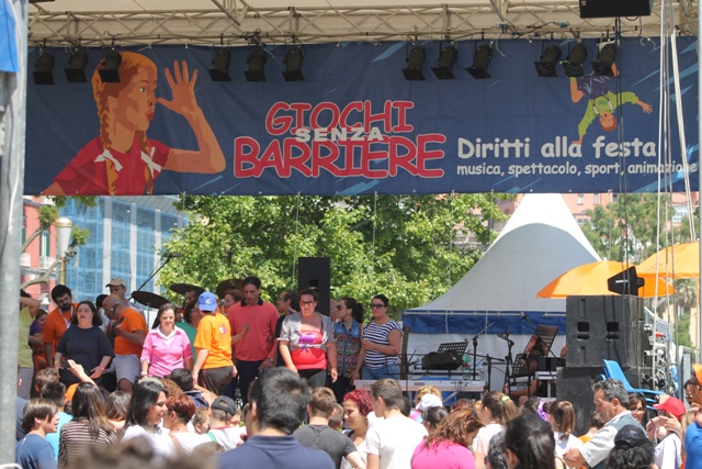 Sole, musica e tanto divertimento oggi in villa Comunale, in occasione della giornata dedicata ai disabili intitolata: “Giochi senza barriere”. A cura dell’associazione “Tutti a scuola”, dalle 10:00 alle 21:00 in villa hanno presenziato anche molti volti noti dello spettacolo e della musica.