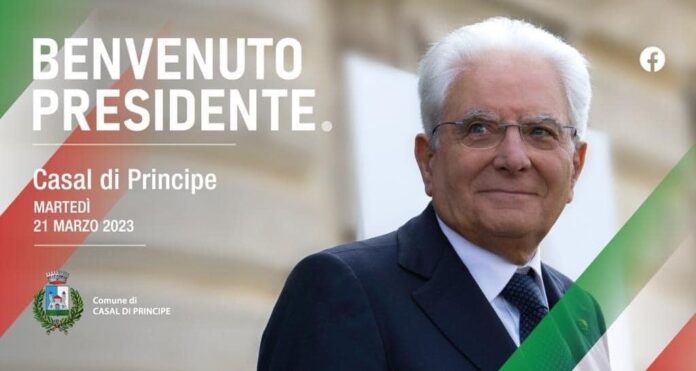 Il presidente della Repubblica Sergio Mattarella oggi a Casal di principe per l`anniversario dell`uccisione di Don Peppe Diana, 29 anni fa e in occasione della giornata nazionale in ricordo delle vittime innocenti delle mafie.