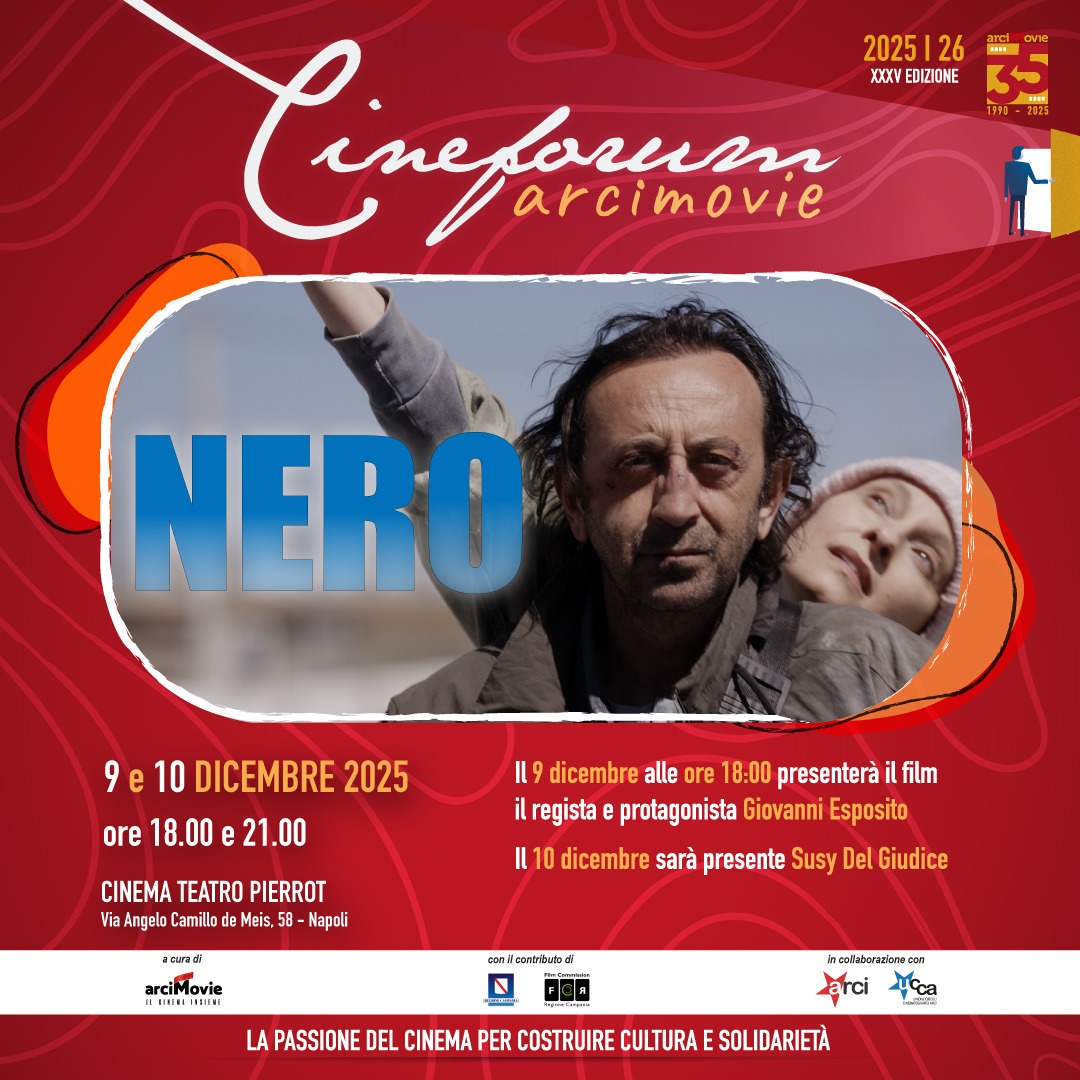 Il Cinema Pierrot di Ponticelli si prepara a ospitare uno degli appuntamenti più attesi dell’edizione 2025/2026 del Cineforum Arci Movie. Martedì 9 e mercoledì 10 dicembre arriva infatti “Nero”, film d’esordio alla regia di Giovanni Esposito, già premiato con due riconoscimenti all’Aquila Film Festival. In entrambe le giornate sono previste due proiezioni, alle 18 e alle 21, accompagnate dalla presenza del regista e dell’attrice Susy Del Giudice, interpreti e promotori dell’opera.