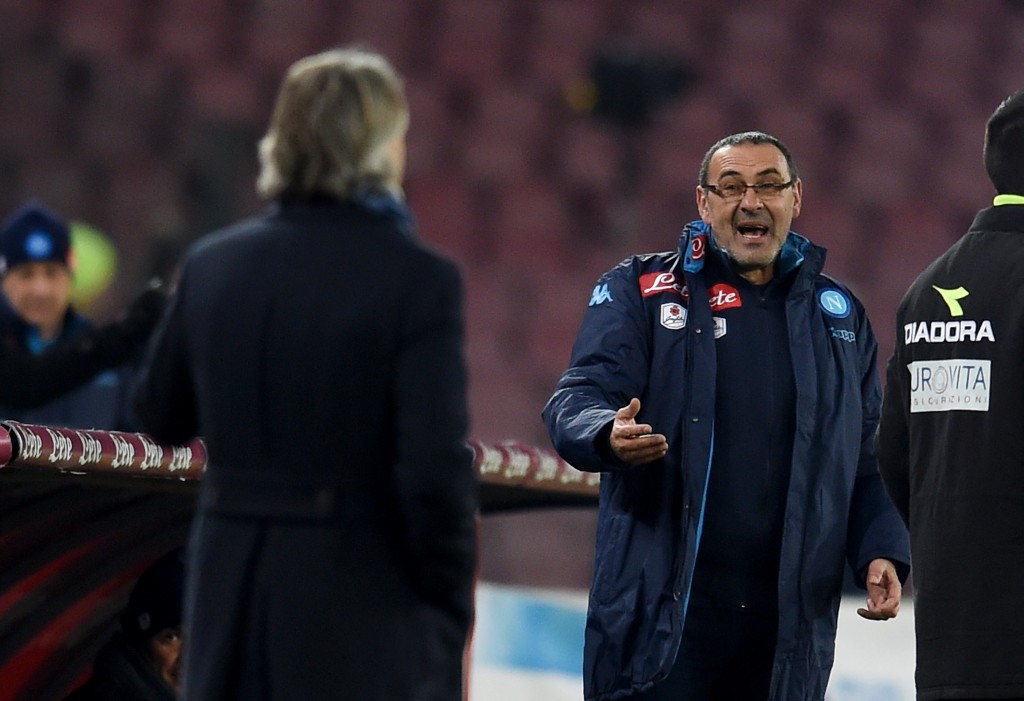 “SQUALIFICA PER DUE GIORNATE EFFETTIVE DI GARA ED AMMENDA DI € 20.000,00 SARRI Maurizio (Napoli): per avere, al 47° del secondo tempo, rivolto all’allenatore della squadra avversaria epiteti pesantemente insultanti; infrazione rilevata dal Quarto Ufficiale e dai collaboratori della Procura federale”