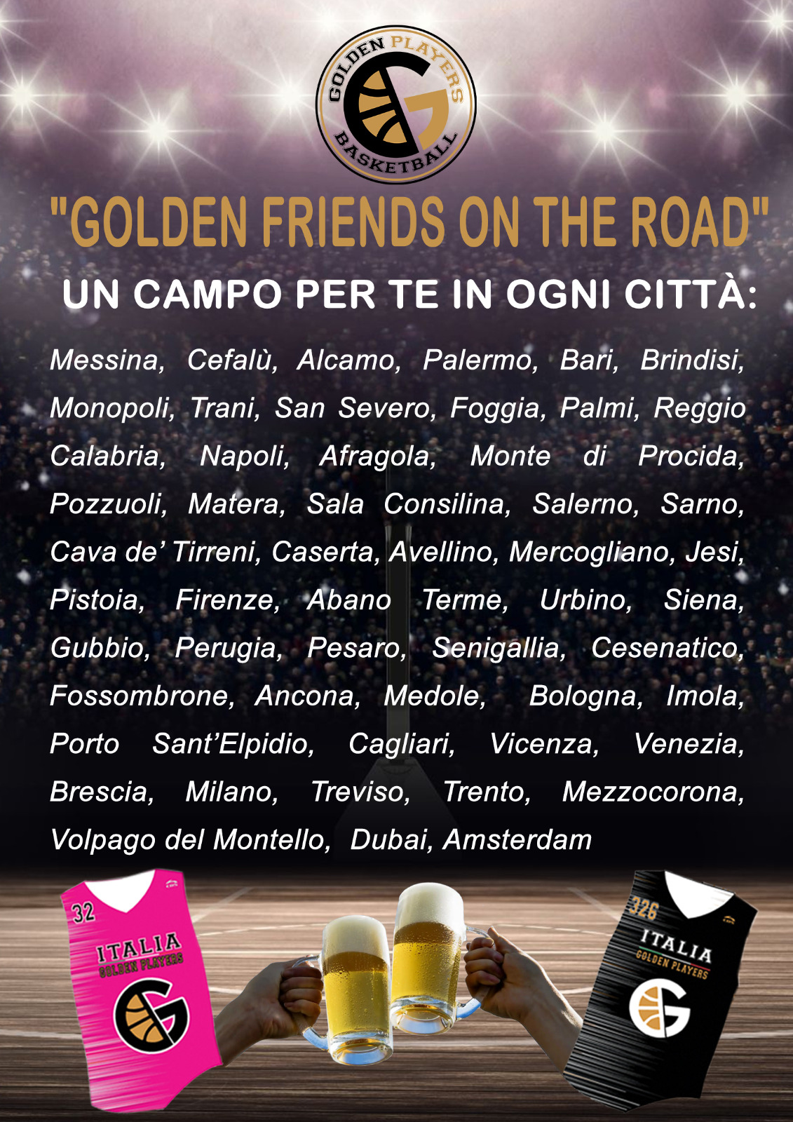 “Golden Friends on the Road” è una nuova iniziativa del gruppo dei Golden Players Italia nel mondo del Maxi Basket del basket dopo i 40 anni. “Un canestro e una birra pagata per tutti”.