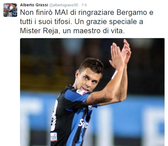 Manca davvero ormai solo l’ufficialità da parte del Napoli, ma Alberto Grassi può definirsi a tutti gli effetti un calciatore del Napoli. Il centrocampista classe 1995 ha, infatti, già salutato, tramite il suo profilo Twitter ufficiale, i suoi ex tifosi e il tecnico Edy Reja che lo ha lanciato al grande calcio con la maglia dell’Atalanta. ““Non finirò MAI di ringraziare Bergamo e tutti i suoi tifosi. Un grazie speciale a Mister Reja, un maestro di vita”.