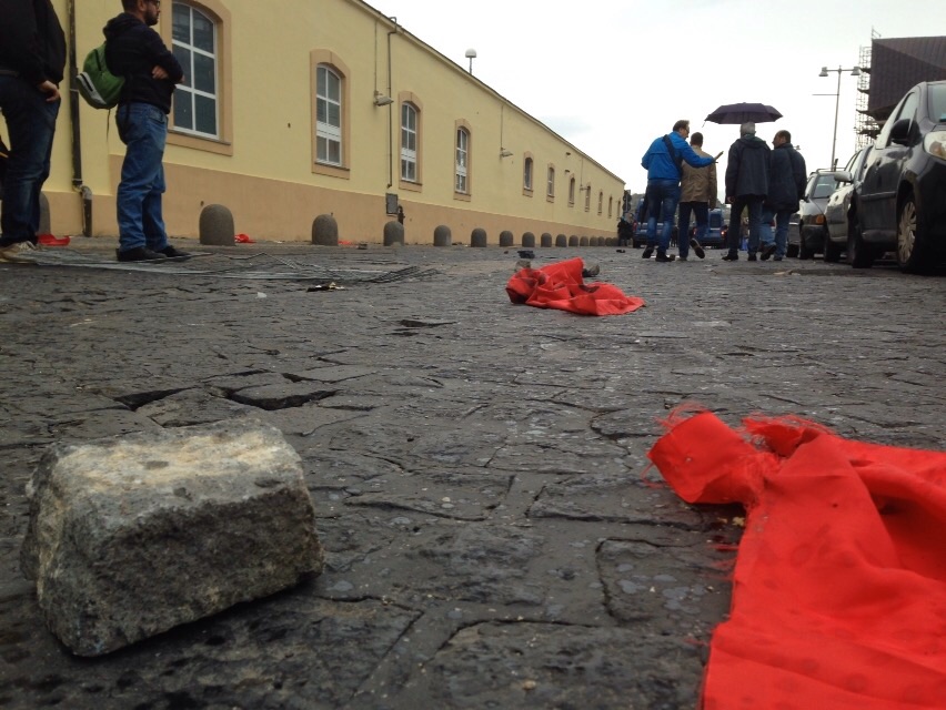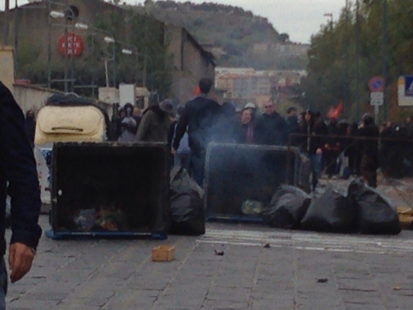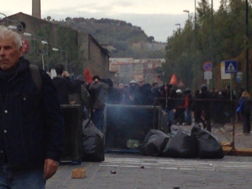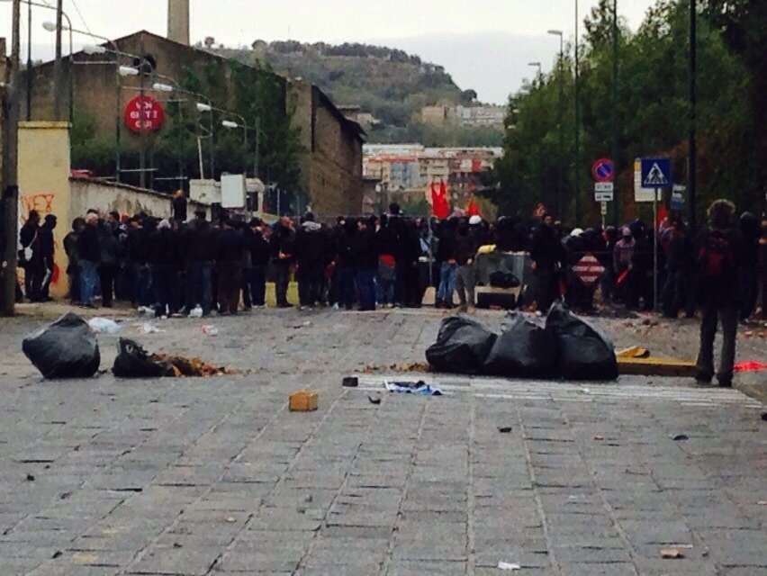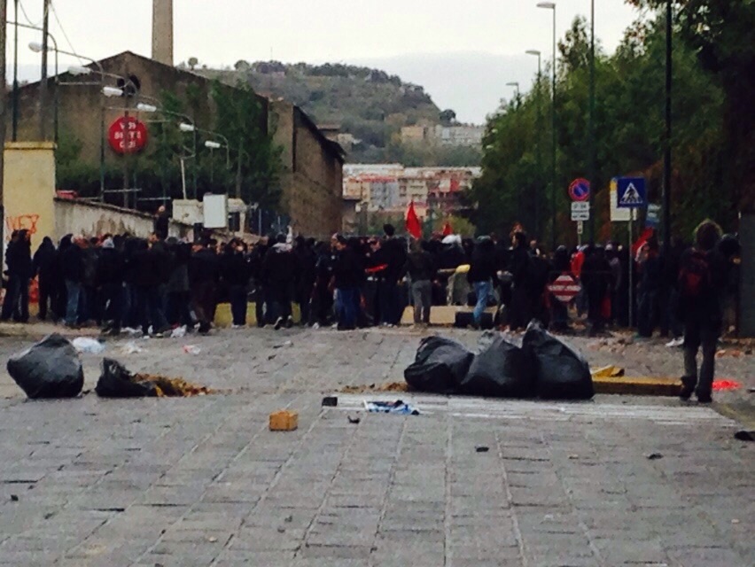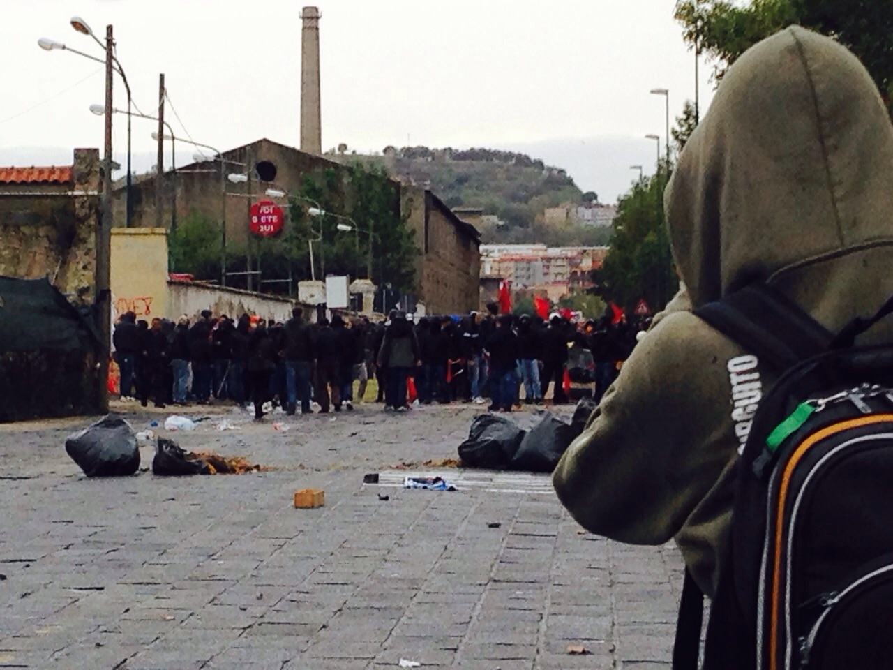 Era nata come una manifestazione forte ma pacifica, e invece verso le 13 nei pressi di Città della Scienza la manifestazione No SbloccaItalia ha preso una piega decisamente violenta. A Città della Scienza era prevista un’assemblea, ma il capo delle forze armate ha bloccato all’ingresso i manifestanti nonostante la presenza del vicesindaco e della giunta poiché sprovvisti di autorizzazione. Mentre Sandro Fucito, Assessore del Patrimonio, di Rifondazione stava cercando un compromesso con le forze dell’ordine, le tensioni sono aumentate finché la situazione è sfuggita di mano, un gruppo di manifestanti ha provato a entrare forzando il cordone delle forze dell’ordine in tenuta antisommossa dando vita ad una grossa rissa con conseguente lancio di fumogeni. Bastoni, petardi e bombe carta sono state lanciate contro la polizia.