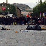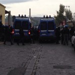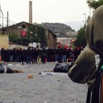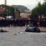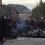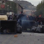 Dalle immagini possiamo notare a terra massi di grandi dimensioni che sembrano essere stati lanciati tra la folla di manifestanti. Le percosse da parte delle forze dell’ordine sono state violentissime e sta nascendo una barricata, alcuni manifestanti si sono introdotti armati in un cantiere dando vita ad una vera e propria guerriglia.