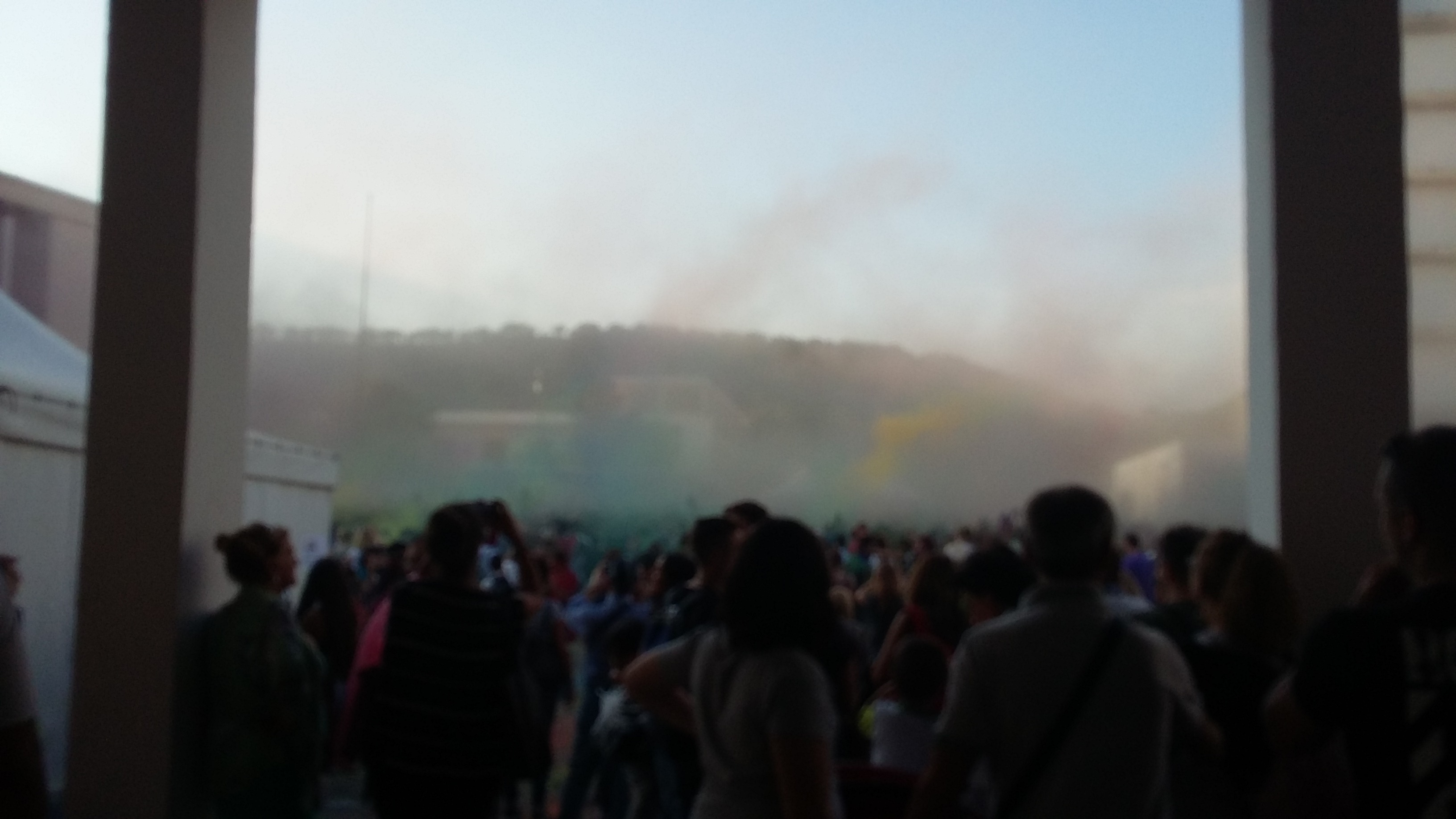 Il palco, situato in fondo al viale della Mostra d’Oltremare, intrattiene gli astanti con una musica allegra e vivace, scandendo con un conto alla rovescia il momento in cui lanciare in aria la propria bustina. Nello stesso istante alcuni cannoni lanciano altra polvere e si lascia andare ogni preoccupazione, si balla, si ride per ore.