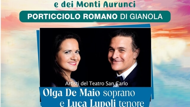 Il 1 settembre vi sarà un evento imperdibile e molto suggestivo al quale assistere : la meravigliosa esibizione del soprano Olga De Maio e del tenore Luca Lupoli,artisti del Teatro San Carlo, accompagnati dalla pianista Natalia Apolenskaja, al tramonto,alle h.18, nel porticciolo romano di Gianola, che rientra tra gli appuntamenti dell’ VIII Edizione della Rassegna ” La Porta del Sud” organizzata dall’ Associazione Culturale La Magica e dal suo presidente Augusto Ciccolella.