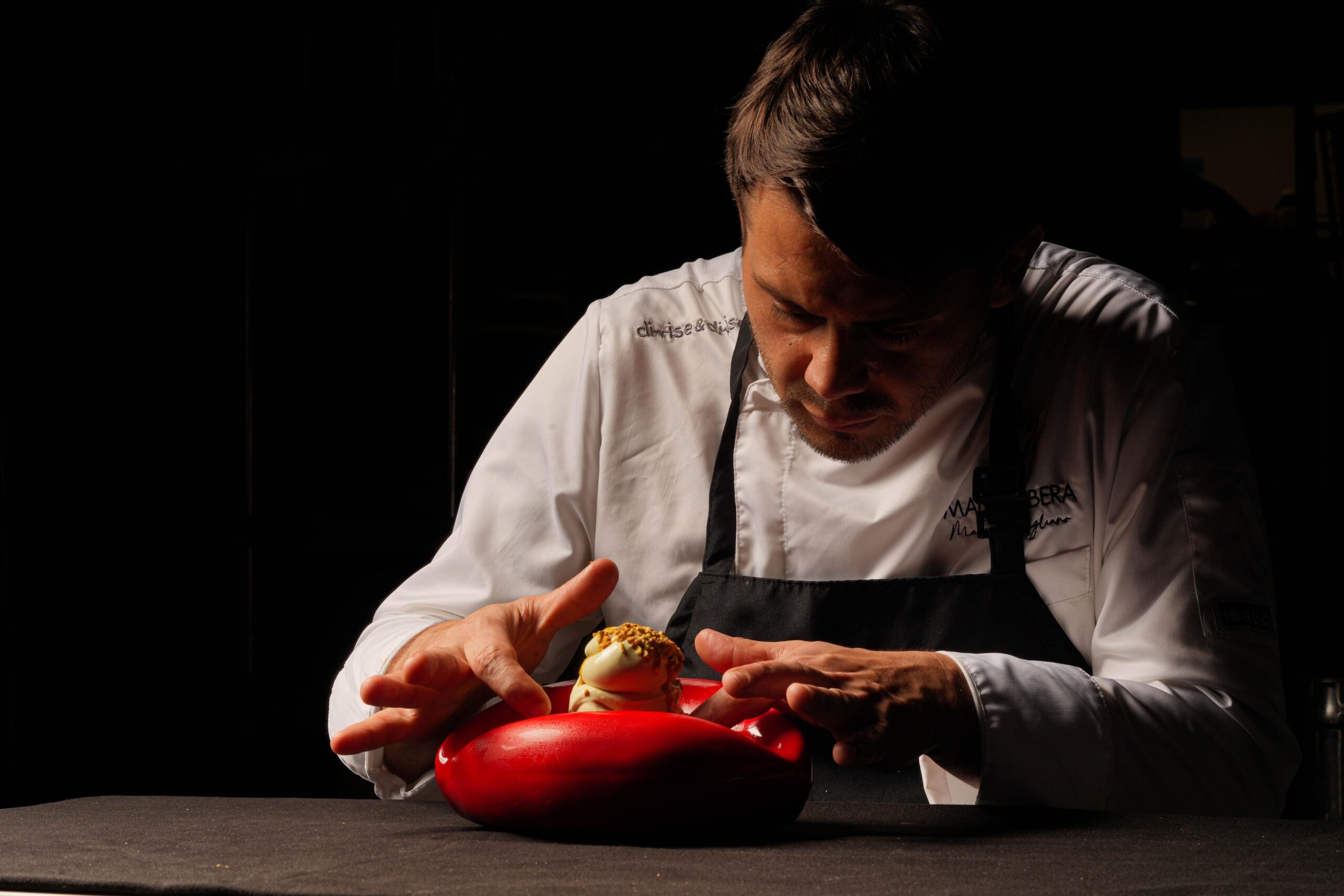 Mani colorate agguantano bon bon e briochine, bocche rosse e carnose baciano gelati al pistacchio. I piatti artistici e sensuali di Marco Giugliano, chef napoletano 34 anni trapiantato a Miami, sono serviti. Nel suo ristorante “Mano libera”, la cucina è condita del piacere di mangiare con tutti sensi e il dessert si gusta su piatti di design dalle forme sensuali e dalle sensazioni tattili.
