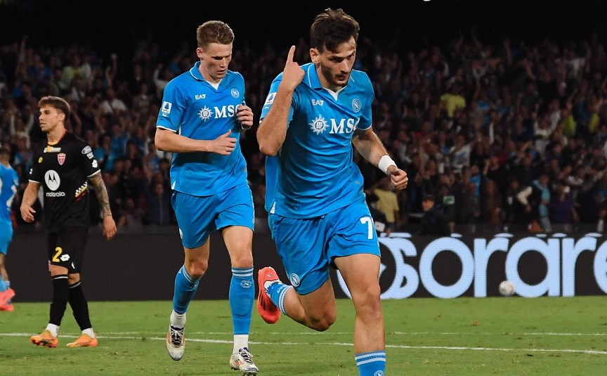 I padroni di casa hanno dominato il match sin dai primi istanti. Il Monza si è visto nel primo quarto d’ora, ma al 22′ Politano è riuscito a sbloccare il punteggio: dopo un tentativo di sponda con Lukaku, l’esterno azzurro da posizione defilata è riuscito a superare Turati. La squadra di Conte ci ha messo undici minuti per arrivare al raddoppio con Kvaratskhelia, abile a sfruttare un errore in fase di costruzione da parte dei degli ospiti. Nella ripresa il copione non è minimamente cambiato, i partenopei hanno cercato a più riprese il 3-0, è stato McTominay – sugli sviluppi di un calcio d’angolo – a sfiorare la terza rete con un gran colpo di testa. Il Monza ha fatto fatica, soltanto una zuccata di Djuric, bloccata in due tempi da Caprile, e una punizione di Maldini hanno creato qualche grattacapo alla difesa di casa.