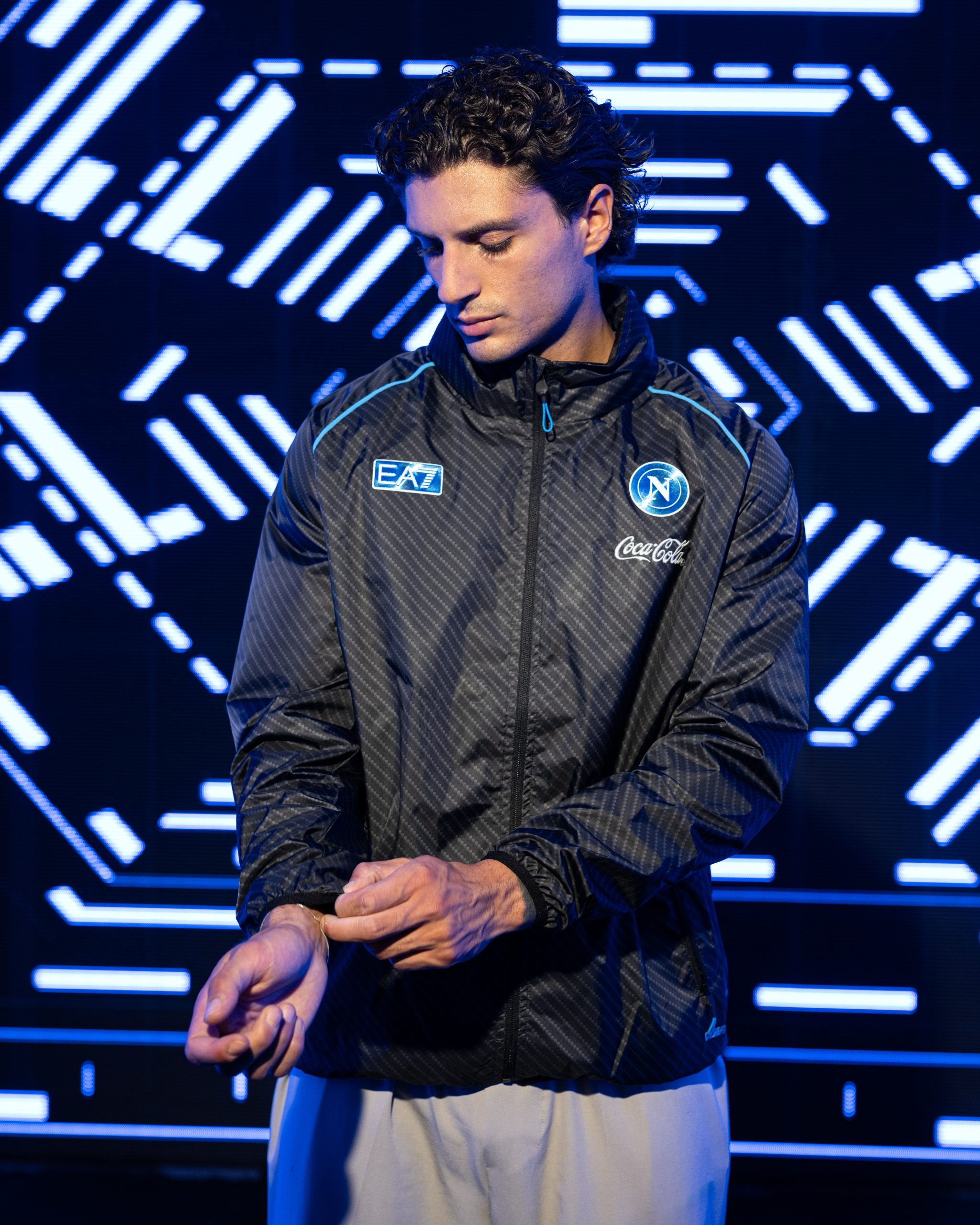 Dopo il grande successo della scorsa stagione, l’iconico logo Coca-Cola torna ad arricchire la linea training della SSC Napoli, che quest’anno si ispira all’universo “Cyborg”. Il concept è quello dell’uomo bionico, una celebrazione della perfetta sintonia tra atleta e tecnologia. Il risultato è un design futuristico che richiama linee metalliche e circuiti elettronici, attraverso dettagli in contrasto che evocano il potenziamento del corpo umano in ogni elemento della divisa.