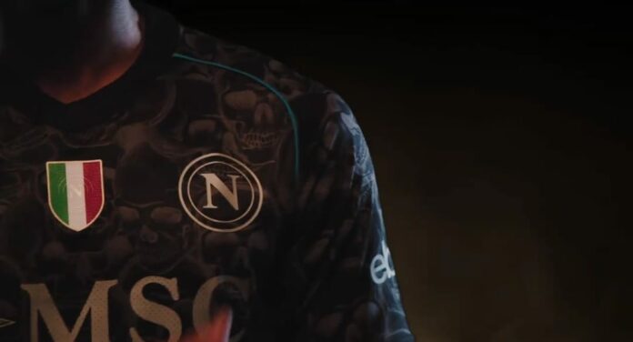 Il Calcio Napoli ha presentato nelle scorse ore la nuova maglia in stile Halloween che la formazione allenata da Rudi Garcia indosserà per tutto il mese di ottobre. Dopo la seconda maglia, che omaggia il Vesuvio, anche questa trae ispirazione da uno dei simboli della città, ovvero il Cimitero delle Fontanelle.