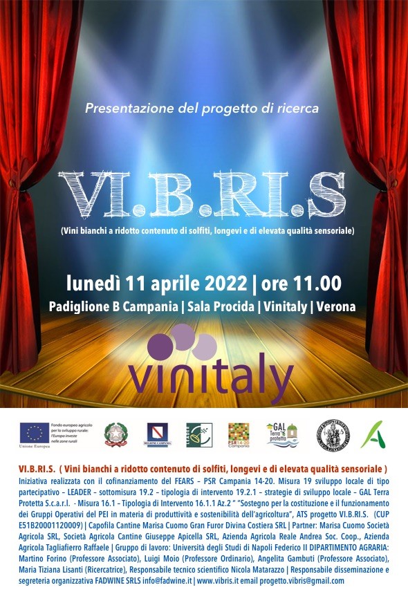 Vi.B.Ri.S., promosso per favorire una viticoltura che tuteli e valorizzi la biodiversità locale e la salute dei consumatori, sarà presentato lunedì 11 aprile (ore 11) presso la Sala Procida del Padiglione B Campania