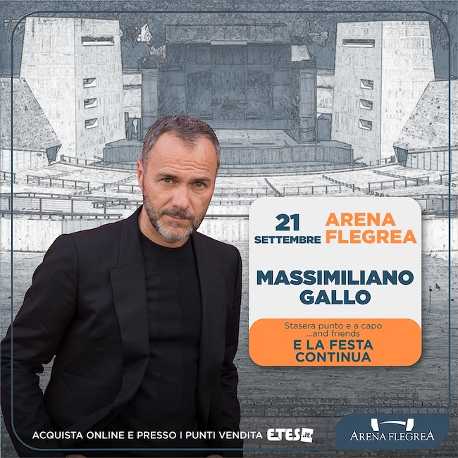 Terzo appuntamento sabato 21 settembre con Massimiliano Gallo in “Stasera punto e capo and friends e la festa continua”. Biglietti: prevendita attiva su Etes.it e Ticketone.it oppure la sera dello spettacolo al botteghino. L’ultimo spettacolo in programma è con Francesco Cicchella.
