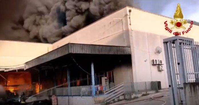 Incendio a San Marco Evangelista, nel Casertano, negli stabilimenti di un’azienda specializzata nella lavorazione del caffe’. La colonna di fumo denso e nero si staglia netta nel cielo mentre le fiamme sono andate avanti a bruciare per tutta la notte. Cinquemila metri quadri interessati dalle fiamme dopo il rogo scoppiato ieri sera.