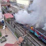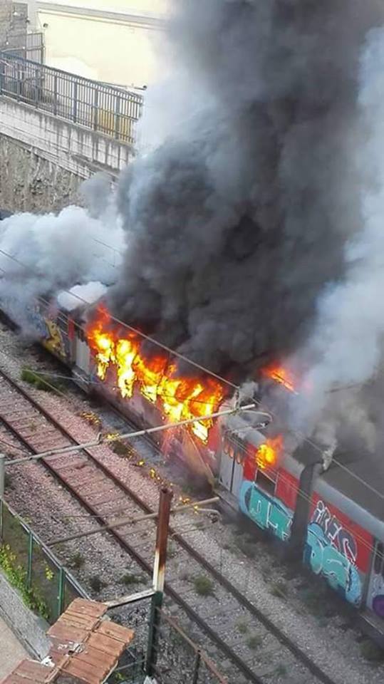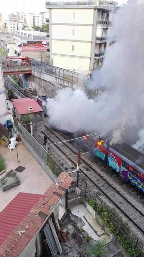 Nei pressi della stazione di Fuorigrotta, una treno della Cumana ha preso improvvisamente fuoco questa mattina. Il convoglio viaggiava verso il deposito e nessun passeggero era, fortunatamente, a bordo. Le fiamme pare siano state causate da un corto circuito e l’enorme colonna di fumo nero sprigionata dall’incendio era visibile da molti chilometri. I Vigili del Fuoco sono prontamente intervenuti e hanno lavorato per circa due ore, ma sulle linee della Cumana è scoppiato il caos a causa dei forti ritardi e lamentele degli utenti.