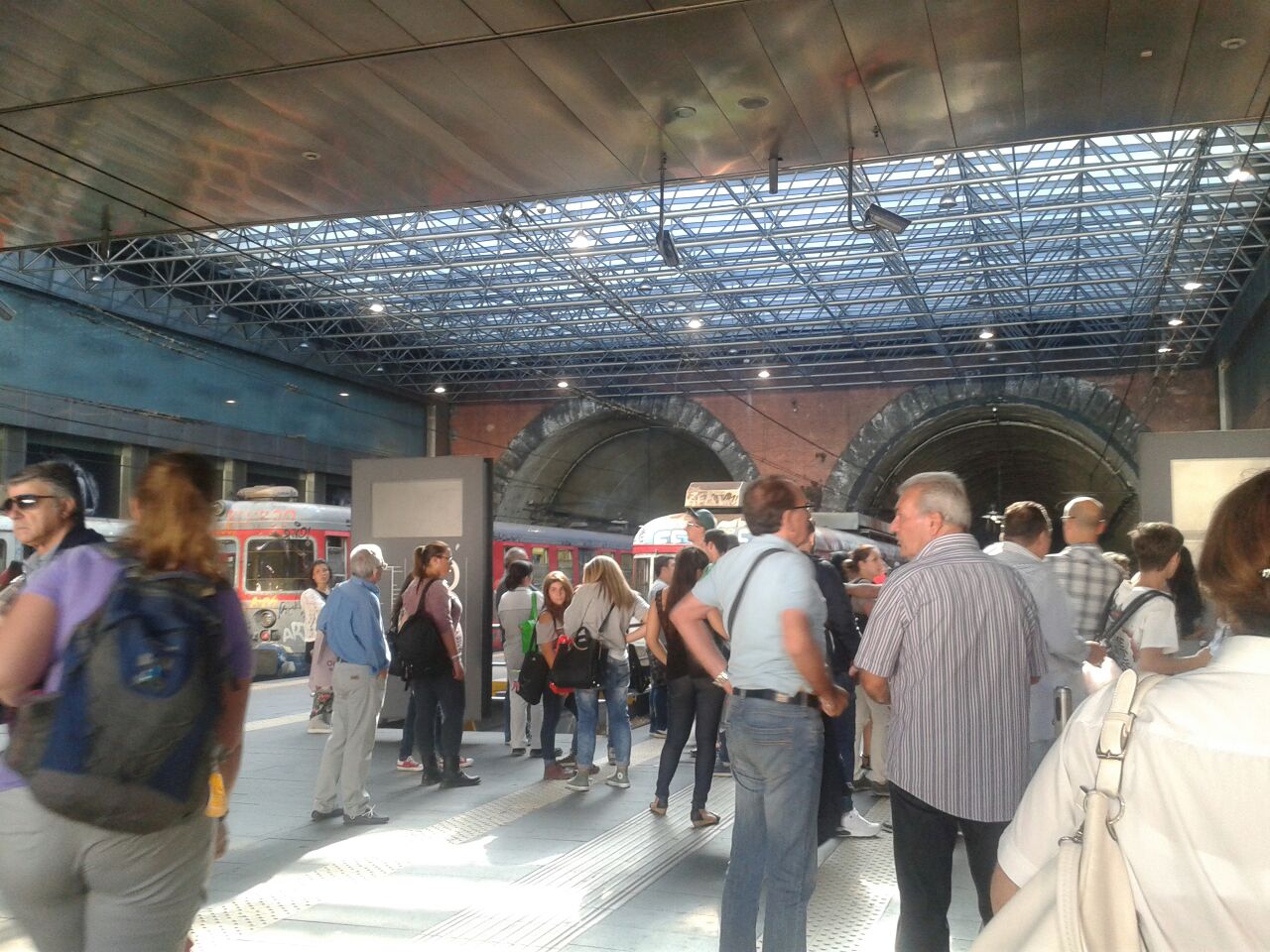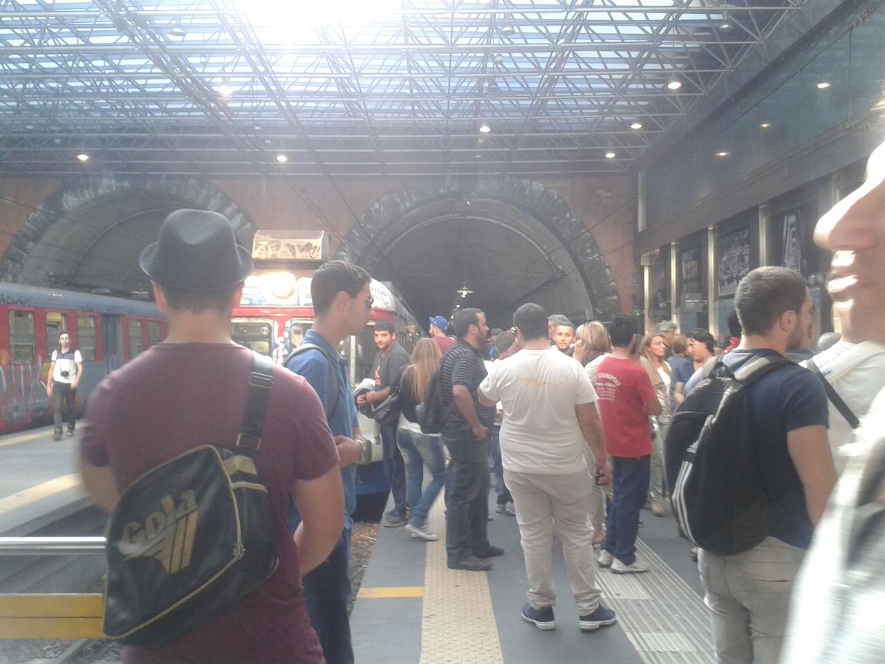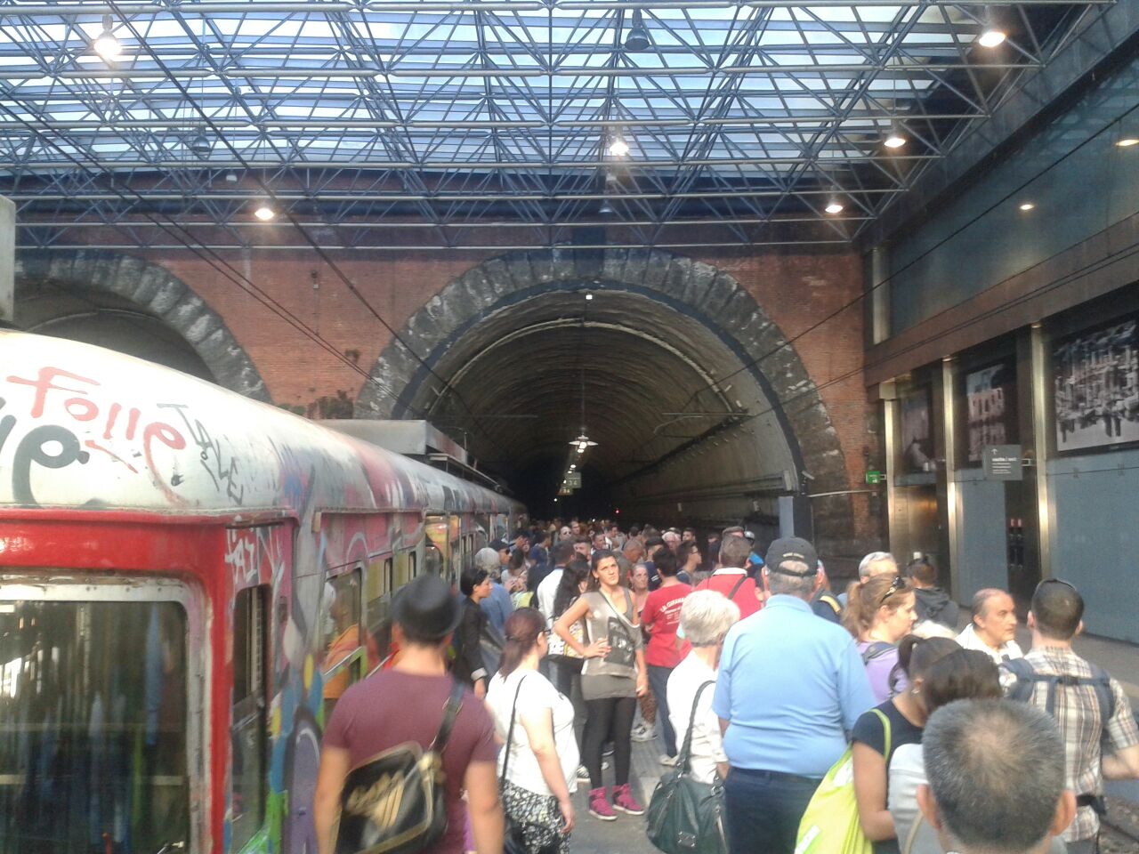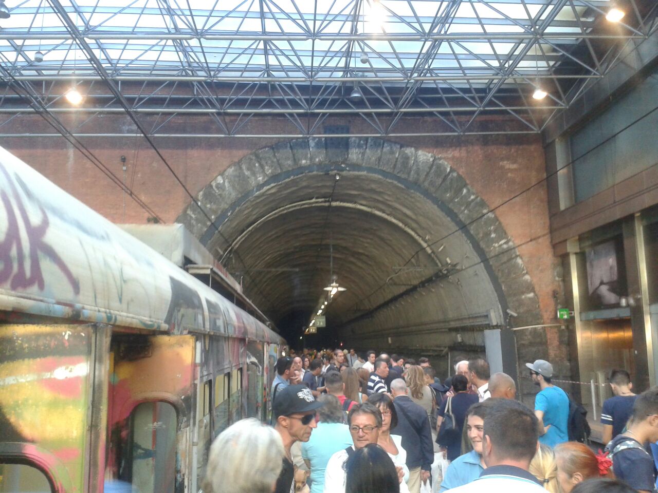 Proprio lo scorso martedì alcuni avvisi erano esposti sulle porte della stazione di Fuorigrotta che recitavano: “Avviso. I treni viaggiano con un notevole ritardo!“, dopo che il treno per Montesanto è riuscito a partire solo dopo più di un’ora di attesa, mentre negli scorsi giorni numerose sono state le chiamate a polizia e carabinieri che sono intervenuti a riportare la calma tra gli utenti della cumana che denunciavano animatamente i disservizi. Cosa che succede anche oggi. Come sempre c’è da dire. Molte persone hanno lasciato la stazione dopo l’annuncio, la tratta compromessa è soprattutto quella di Bagnoli – Fuorigrotta, mentre quella per Soccavo è partita dopo alcune ore con gravi difficoltà. Ecco l’enorme folla di persone che aspettava sulle banchine fin sotto al tunnel: