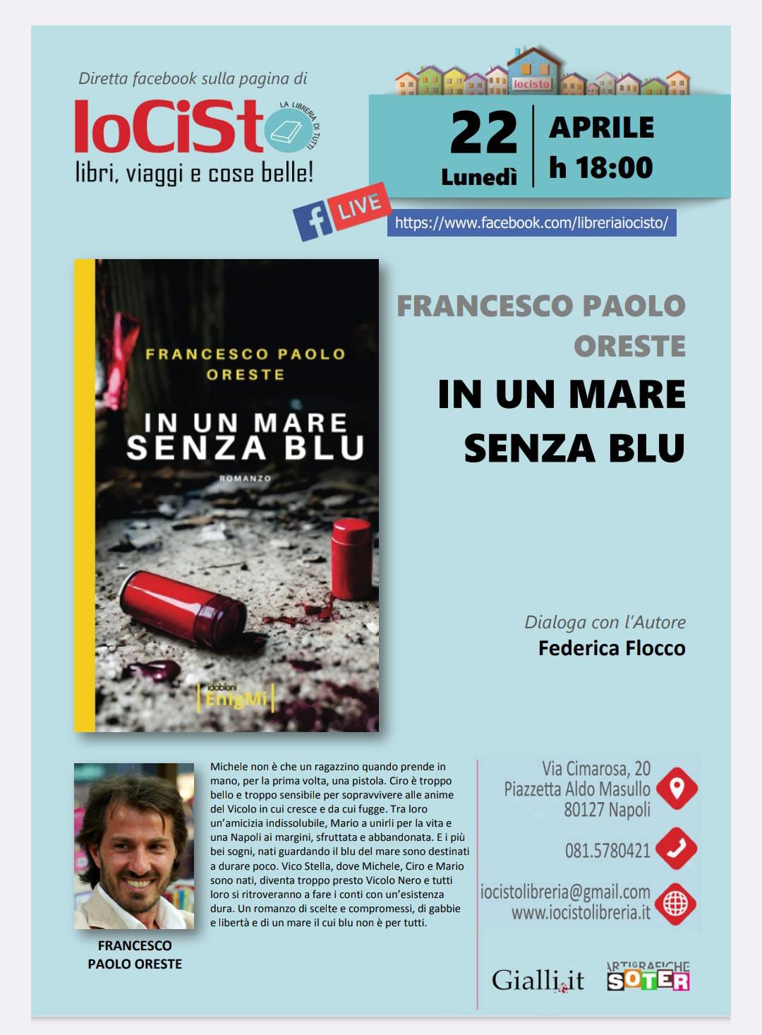 Dallo scorso 12 marzo è tornato in libreria Francesco Paolo Oreste con il suo nuovo romanzo “In un mare senza blu”, pubblicato da iDobloni, per la collana “Enigmi”. Una storia che ha il potere di raccontare la Napoli dei vicoli, degli emarginati, dei diversi e di chi non ha scelta, lì dove la vita diventa sopravvivenza.