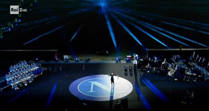E’ una Napoli che celebra se stessa con uno sguardo all’internazionalità quella che festeggia allo stadio Maradona il terzo scudetto del Calcio Napoli. Stefano De Martino a fare da conduttore nelle mille sfaccettature della città. Si comincia con James Senese che con il sax suona ‘O surdato ‘nnamurato’. Poi Alessandro Siani che viene introdotto e il pubblico lo accoglie con un’ovazione. L’artista ricorda Diego Armando Maradona, dagli spalti parte il coro “Olè olè olè olè, Diego, Diego!”. E’ la volta di Tullio De Piscopo e Arisa che canta “Era de maggio”.