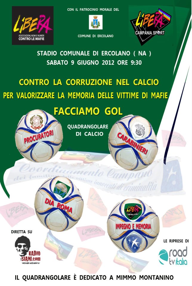 Sabato 9 giugno, dalle ore 9.30, presso lo Stadio comunale di Ercolano, quadrangolare di calcio tra: