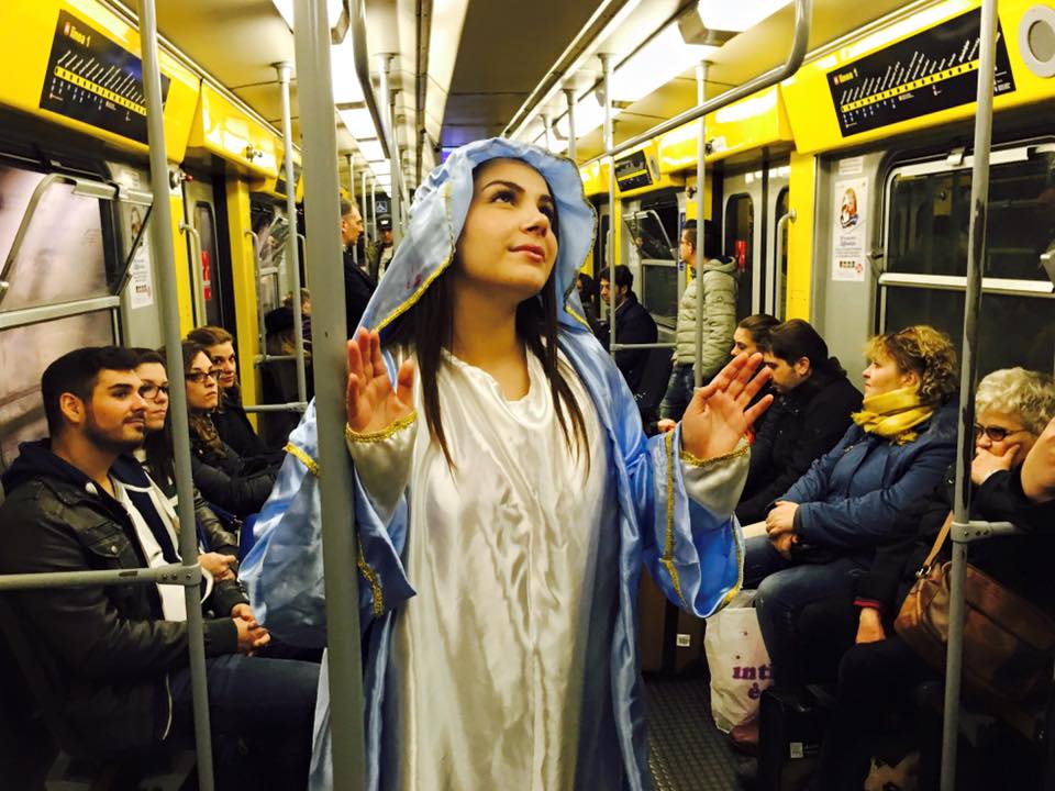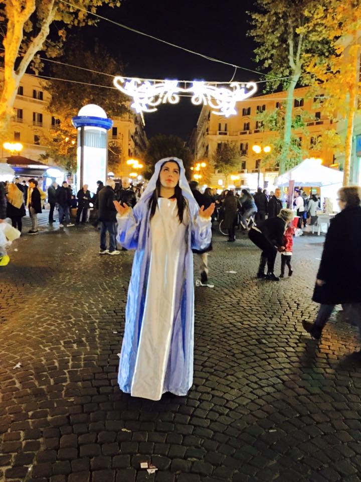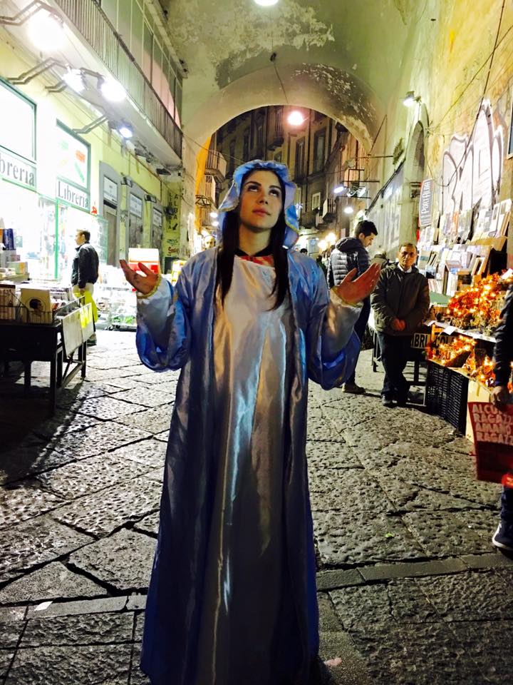 La nota attrice pornografica italiana, di Scafati, Valentina Nappi, lanciata nel mondo dell’hard da Rocco Siffredi all’età di 21 anni, ha realizzato una serie di scatti, pubblicati sulla sua pagina Facebook, per le strade di Napoli travestita da Madonna, in perfetto tema natalizio. Un vestito in realtà già usato da lei in occasione della festa di Halloween.