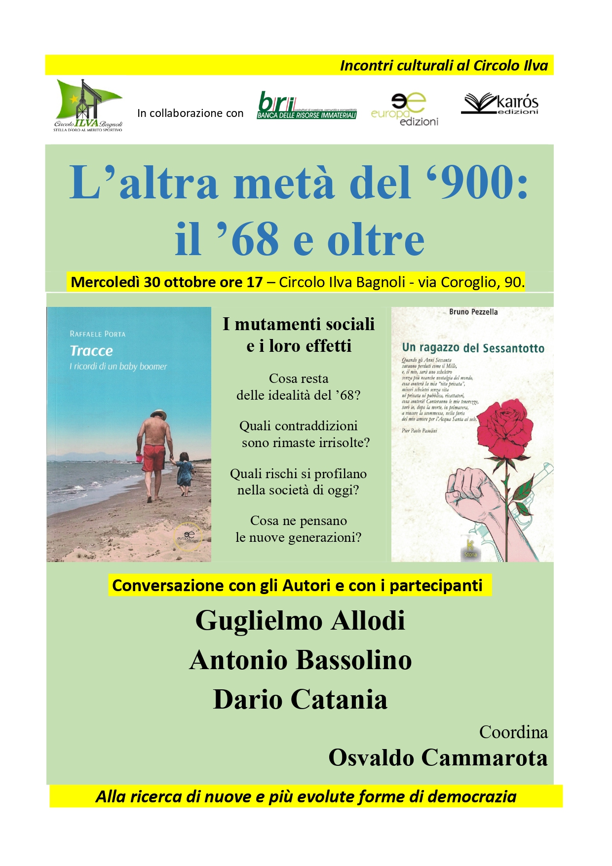 Mercoledì 30 ottobre alle ore 17:00 presso il salone “Pio La Torre” del Circolo Ilva Bagnoli si terrà l’evento “L’altra metà del ‘900: il ‘68 e oltre”.