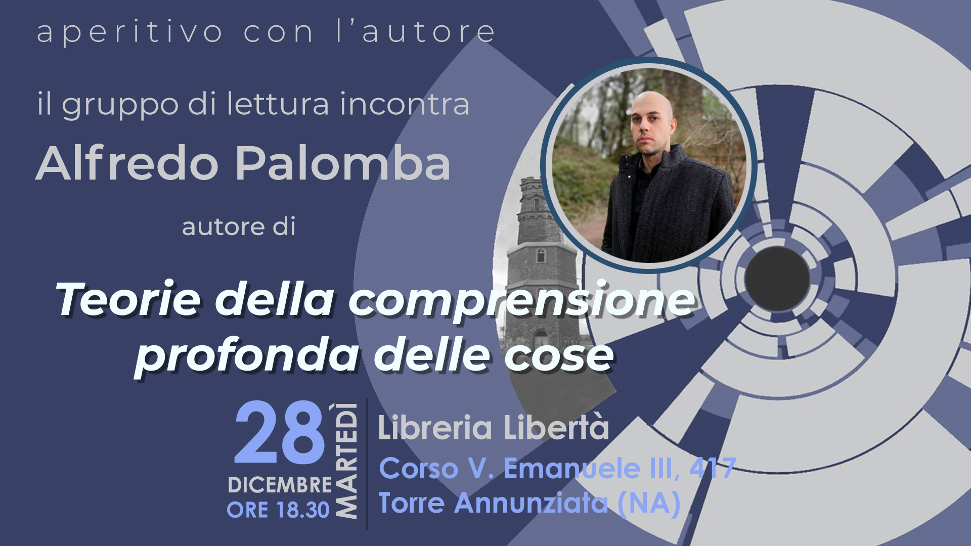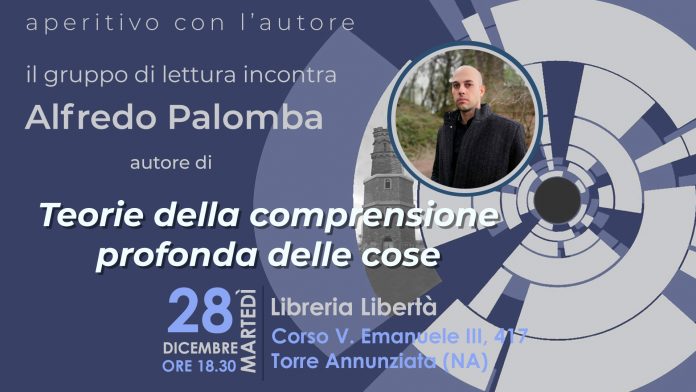 Il gruppo di lettura di Libertà libreria & biobar Asperula, erboristeria con BioBar e libreria indipendente con ampio assortimento per bambini, giovani e meno giovani, incontrerà il 28 dicembre 2021, alle ore 18.30, in Corso Vittorio Emanuele III, 417, Torre Annunziata, Alfredo Palomba, autore del romanzo postmoderno “Teorie della comprensione profonda delle cose”, pubblicato da Wojtek edizioni. Palomba ci conduce alla scoperta di personaggi esagerati ma attuali, dietro cui si celano tipologie umane criticabili o risibili. Con questo testo irriverente, sopra le righe, per niente convenzionale, Alfredo Palomba è stato candidato allo Strega 2020, presentato dalla scrittrice Antonella Cilento. Alfredo Palomba, classe 1985, è dottore di ricerca in letterature comparate e docente della scuola secondaria. È originario di Scafati ma vive e lavora a Cesena.