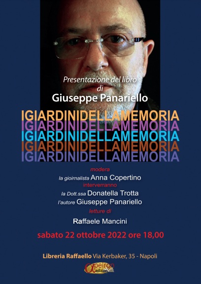 Sabato 22 ottobre, alle ore 18, presso la Libreria Raffaello, in via Kerbaker 35, a Napoli, si terrà la presentazione del libro “I giardini della memoria”, di Giuseppe Panariello.