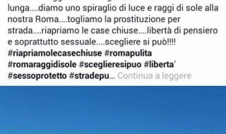 Partendo da Roma, per poi estendersi in tutti i Comuni, per risanare le casse e dare una svolta alla società. La Torrisi lancia un preciso messaggio alla Raggi: “La prostituzione per strada è un male sociale che nasconde evasione fiscale, potere dei malfattori e, molte volte, storie tristi“.