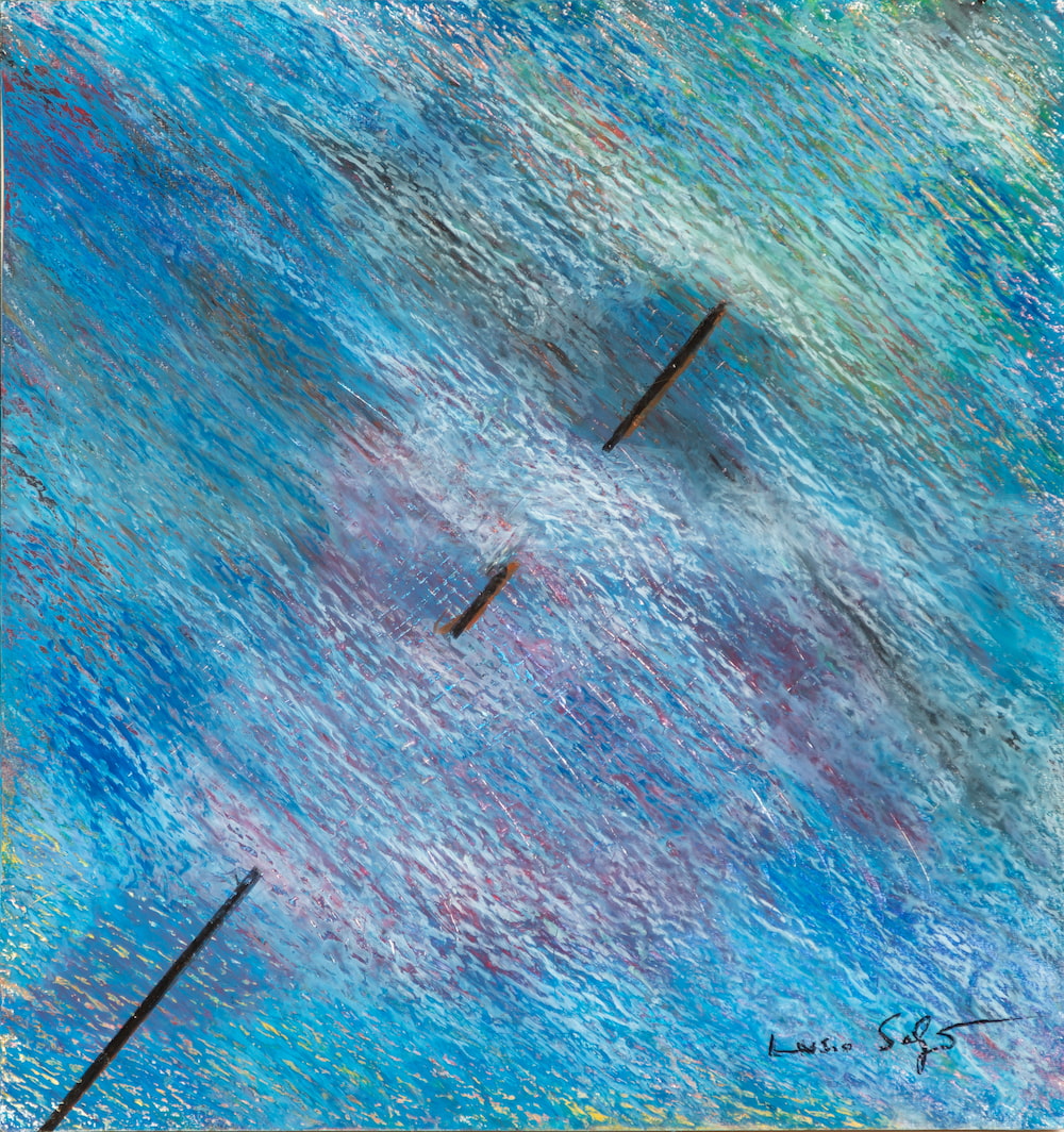 L’autore, definito dalla stampa “uno dei più originali e coraggiosi registi dei nostri tempi” e noto anche grazie all’esposizione permanente di una sua opera al Museo d’Arte Contemporanea Pinacoteca di Teora (AV), ha fatto della contaminazione di generi la sua cifra distintiva e ha composto il tappeto sonoro che interagisce con le immagini delle sue opere in esposizione. In esposizione è un trittico inedito che si presenta, nella parte centrale, con un’opera di grandi dimensioni realizzata a olio su carta da imballaggio, due opere laterali a olio su cartone e la riproposizione, sotto forma di fotografia digitale su tela, della sua scultura “Yacht of dreams”, già esposta nel 2020 a Palazzo Venezia.