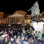 Pino Daniele ha cantato “la vera essenza di Napoli”, “la sua purezza”, dice ancora qualcuno. “Oggi Napoli piange, perché se n’è andato un grande”. La commozione di piazza Plebiscito è palpabile ovunque. Anche nel cielo che si annuvola, e comincia a stillare gocce di pioggia. Una pioggia leggera, silenziosa. Come lacrime di un pianto sommesso.