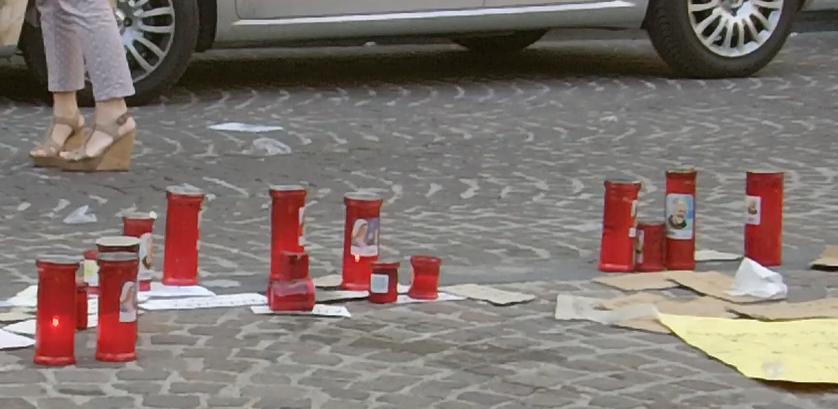 Lumini cimiteriali hanno illuminato questo pomeriggio i marciapiedi di fronte Palazzo San Giacomo, simboleggiando la “morte del Welfare a Napoli”.