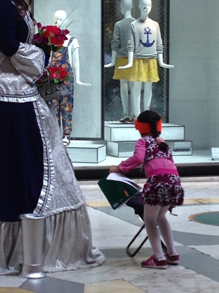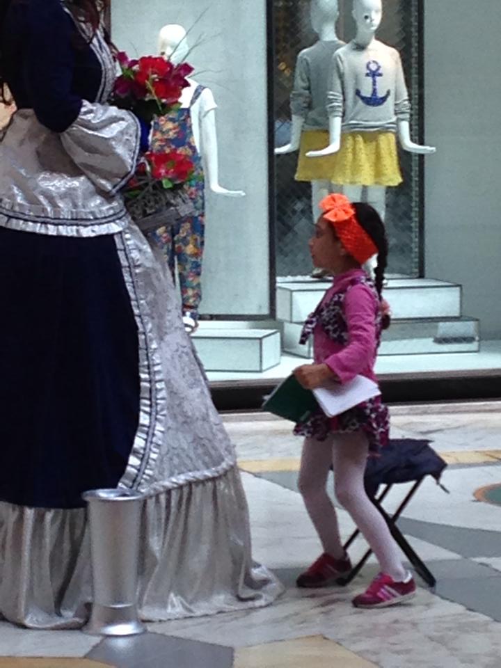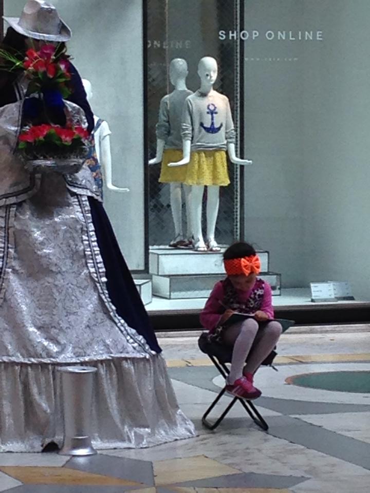 Proprio pochi minuti fa, si poteva vedere al centro della Galleria Umberto a Napoli una delle tante “statue” umane che posano per i turisti. Questa volta, però, la “mamma statua” era accompagnata dalla figlioletta che, costretta in una seggiolina, era intenta a svolgere i compiti di scuola. Una volta che l’artista di strada si è accorta di essere fotografata ha fatto spostare e nascondere la piccola per poi richiamarci chiedendo un pagamento per ogni foto scattata.