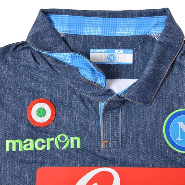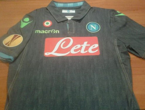 Le immagini della nuova maglia che il Napoli dovrebbe utilizzare nelle partite di Europa League: versione “jeans” con inserti verdi.