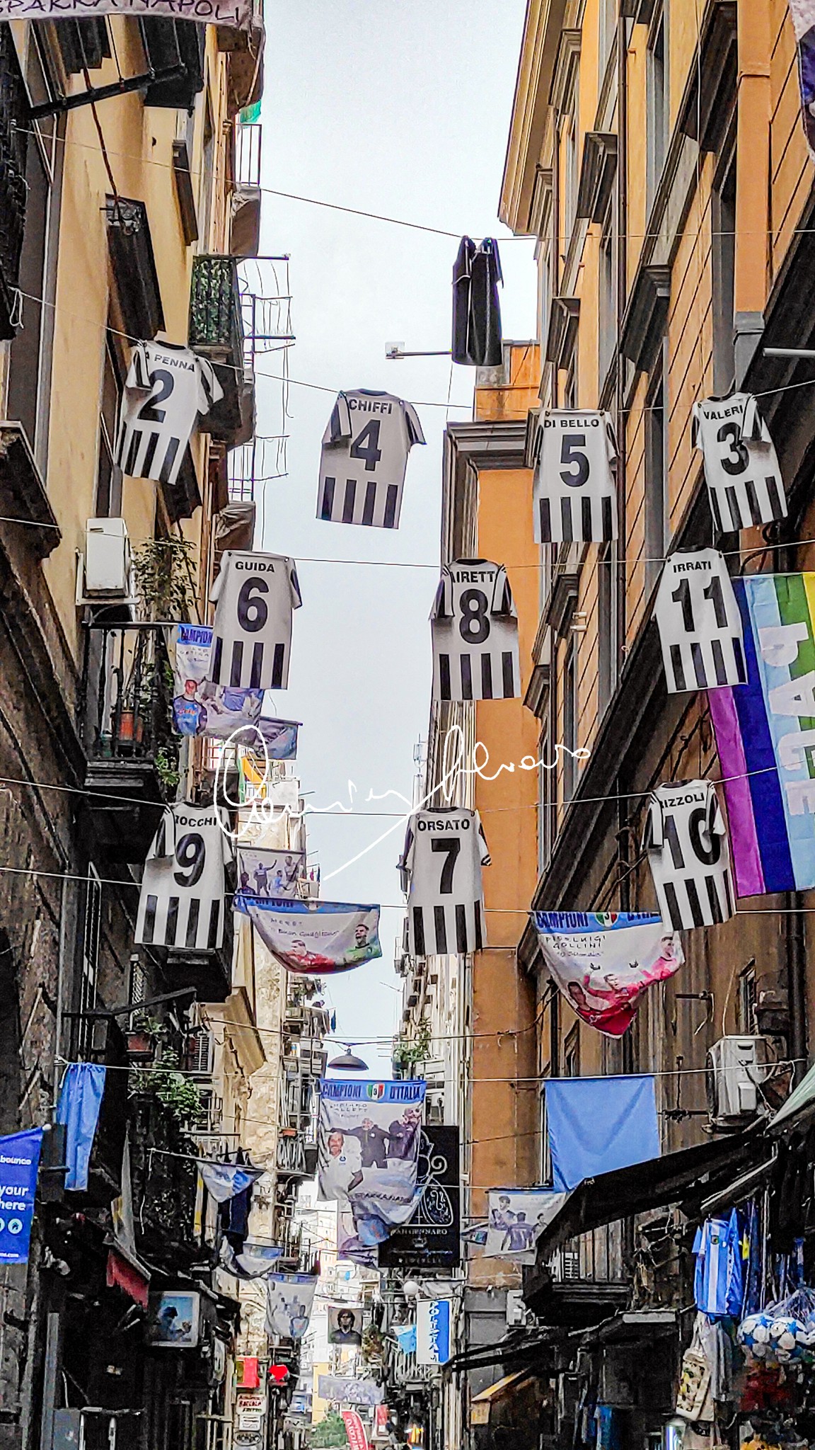 Stamattina, mentre camminavo lungo via San Biagio Dei Librai e osservavo i numerosi festoni della festa dello scudetto ancora sospesi in aria, ad un certo punto, non potevo credere ai miei occhi quando ho visto da lontano tante maglie bianconere penzolare. Mi sono avvicinato incredulo e ho capito! Sulle magliette erano stampati i nomi degli arbitri amici del club!!! Napoletani geniali, ne fanno una e ne pensano cento.”
