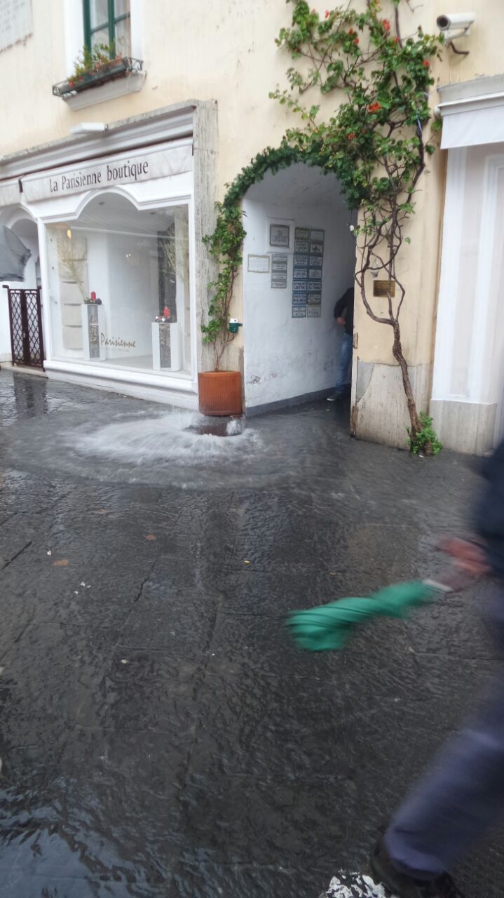 Il maltempo che in questi giorni sta flagellando la Campania, provocando danni anche a Napoli, non ha risparmiato l’isola di Capri. In questo momento i residenti segnalano un violento nubifragio che si sta abbattendo sull’isola azzurra. I condotti fognari sembrano non reggere l’imponente massa d’acqua e i tombini cominciano a cedere. In pochi minuti le strade si sono trasformate in veri e propri ruscelli e i capresi sono costretti a restare chiusi in casa e a fermare ogni tipo di attività. Pressochè paralizzato ogni collegamento marittimo con la terraferma.