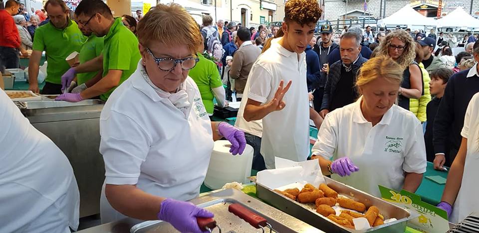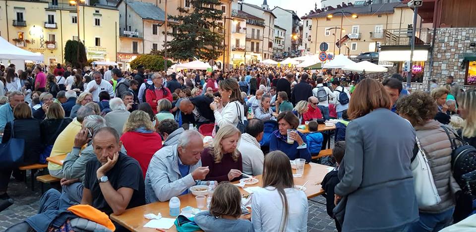 Le pietanze offerte erano davvero tutte di ottima qualità e di vario genere. Bastava camminare di pochi metri e si poteva passare dal gustare il sempre squisito crocchè del Tratturo al Coppetiello di pesce fritto, dalla pasta ceci e pecorino delle Ortensie al napoletanissimo “o pere e o musso“, dai cazzarielli e fagioli della Petra alle pizze sfornate in tempi record da Gennaro di Bagnoli, dagli ottimi “li cauzon al miele” del Campetto degli Alpini alle calde graffe della Bakery. E poi ancora il Forno con il cacio fritto, Chichibio con il suo baccalà in tempura, ravioloni, pan cotto , arrosticini …