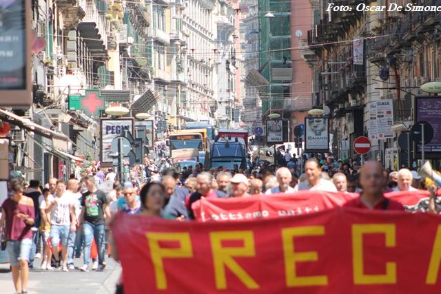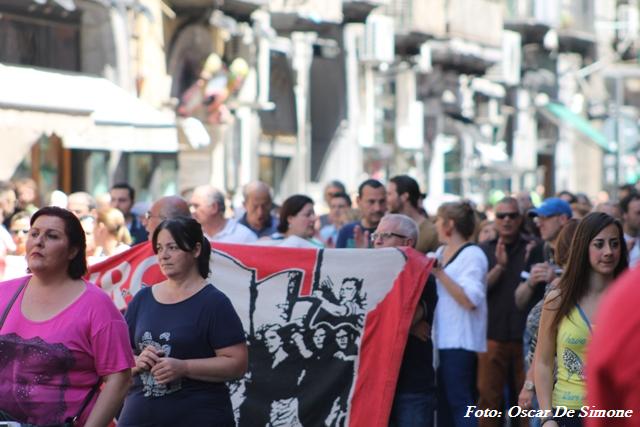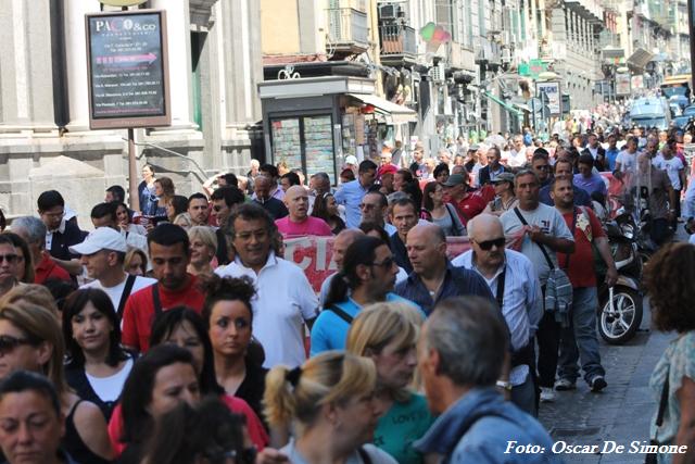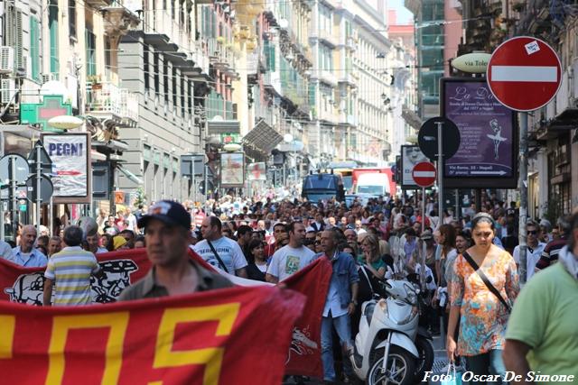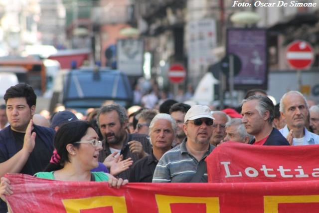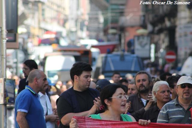 Cori con slogan “O’ lavoro c’avita dà” sono stati intonati dai partecipanti di tutte le età e le fasce sociali che hanno aderito alla manifestazione.