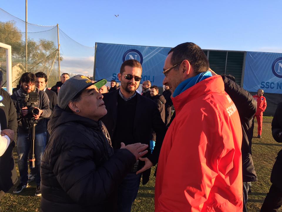 Questa mattina un ospite speciale è stato a Castelvolturno, dove il Napoli si sta allenando in vista della sfida di sabato sera a San Siro contro il Milan. Si tratta di Diego Armando Maradona, che ha raccolto l’invito di Maurizio Sarri, che pochi giorni fa aveva espresso il desiderio di stringergli la mano, e di tutto il club partenopeo.