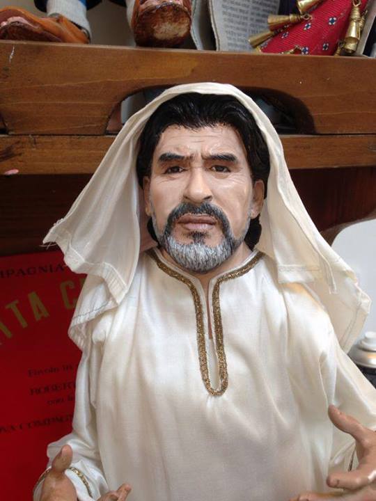 Il prossimo Natale non potrà mancare sul Presepe. Non che sia la prima volta che il Pibe de Oro fa la sua apparizione nella raffigurazione napoletana della natività, ma questa volta l’ingegno dei maestri del Presepe ha superato se stesso.