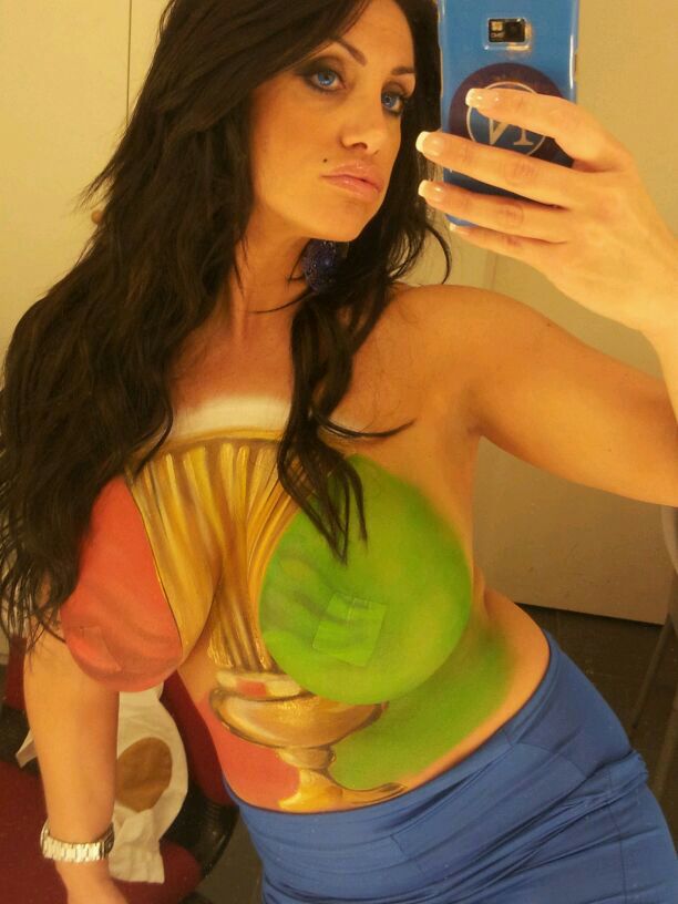 In occasione della finale di Coppa Italia tra Napoli e Fiorentina che si giocherà tra poche ore allo stadio Olimpico di Roma, Marika Fruscio, nota subrette tifosa degli azzurri, si prepara ai festeggiamenti con un body painting molto speciale creato dall’artista Giacomo Leonardo Borghese.