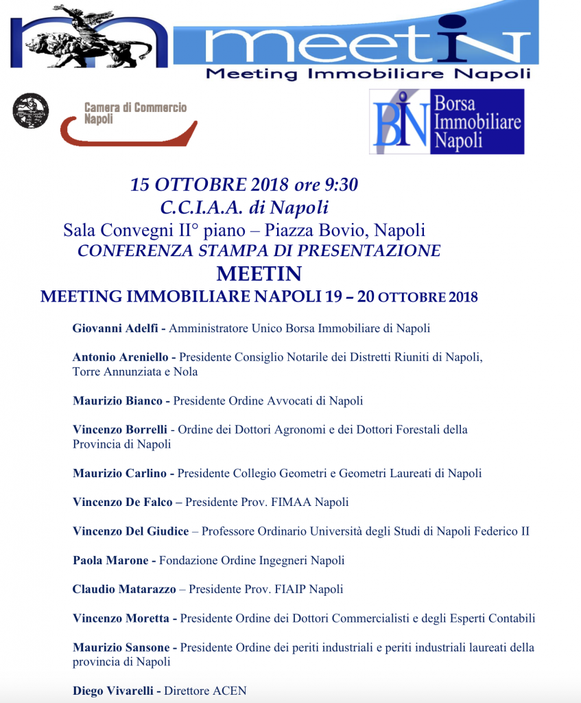Arriva il MeetIn Immobiliare. L’intera filiera del mattone è chiamata a raccolta nei Saloni della Camera di Commercio, per il grande evento voluto e organizzato dalla Borsa Immobiliare di Napoli. Una due giorni per mettere in evidenza opportunità e problematiche di uno dei settori vitali dell’economia della regione Campania.