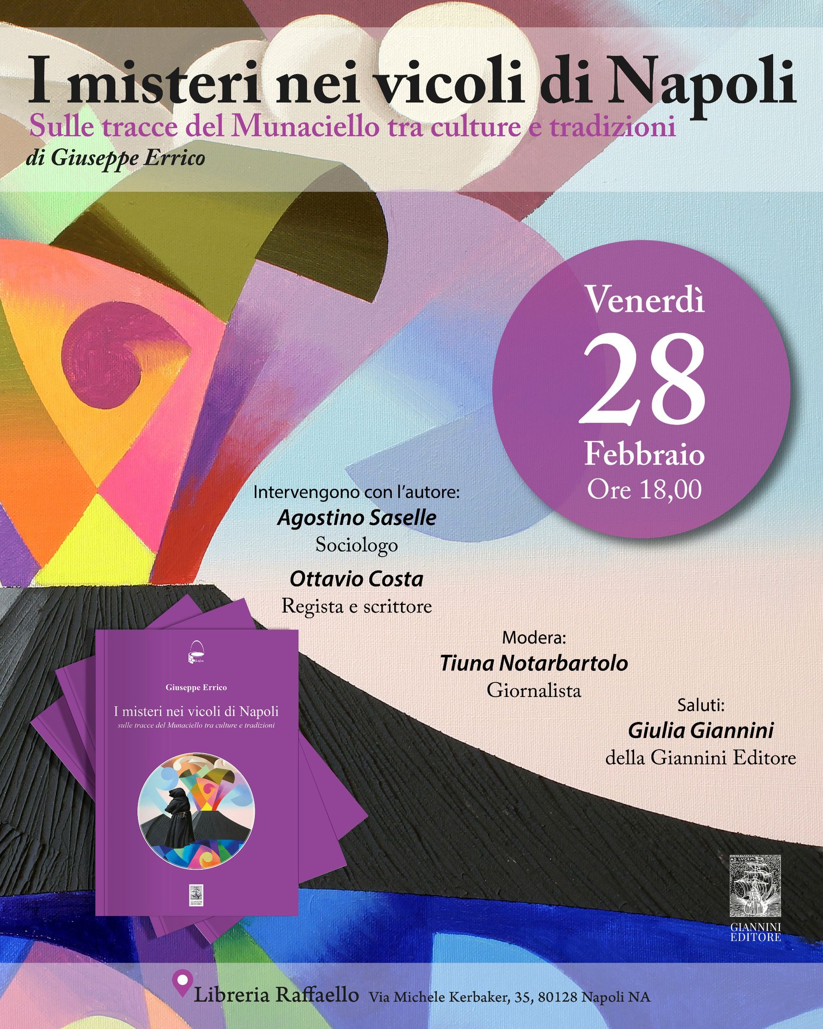 Il monaciello nell’ultimo libro di Giuseppe Errico: “I misteri nei vicoli di Napoli”, pubblicato dalla Giannini Editore e che verrà presentato venerdì 28 febbraio alle ore 18 alla libreria Raffaello, via Michele Kerbaker,35, Napoli.