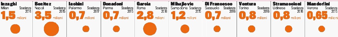 Non solo monte ingaggi dei calciatori del Napoli: sul sito de La Gazzetta Dello Sport, è stato pubblicato un grafico degli stipendi dei vari allenatori di Serie A. Benitez è in cima alla lista, seguito da Mazzarri, Garcia e Allegri. Antonio Conte invece, neo ct della Nazionale, supera di poco il tecnico azzurro.
