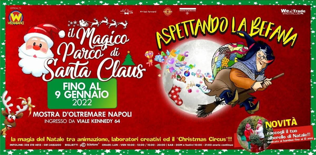 Gran finale per “Il Magico Parco di Santa Claus” al Parco Robinson all’interno della Mostra D’Oltremare con l’arrivo della Befana.
