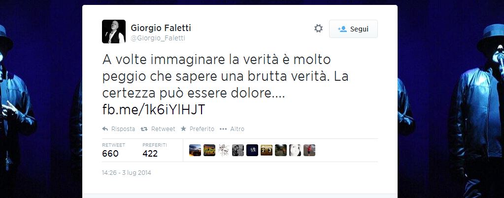 Era malato da tempo, si legge sui giornali, ma la morte dello scrittore, attore e cantante Giorgio Faletti prende tutti di sorpresa. L’artista aveva solo 63 anni e dopo aver lottato con un cancro non ce l’ha fatta e si è spento questa mattina nell’ospedale Molinette di Torino.