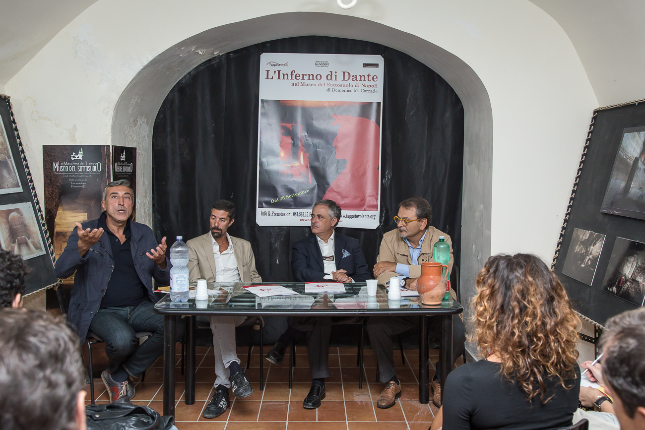 Il direttore Luca Cuttitta precisa subito che il Museo del Sottosuolo di Napoli gli è stato lasciato in eredità dallo speleologo Clemente Esposito: «Su 900 cavità trovate qui a Napoli, 800 e passa sono state scoperte da Clemente: è stato lui a donarmi questo Museo. Come realtà ci dissociamo da molte cose, puntiamo su spettacoli scelti e particolari. Niente accade per caso: né sopra né sottoterra. Ospitare qui Dante è per noi una grande opportunità. Questa cavità, quasi come un grembo materno, sarà luogo di nascita di tanti altri spettacoli. Non a caso oggi presentiamo anche “Le Favole Sottoterra” di Massimo Andrei.»