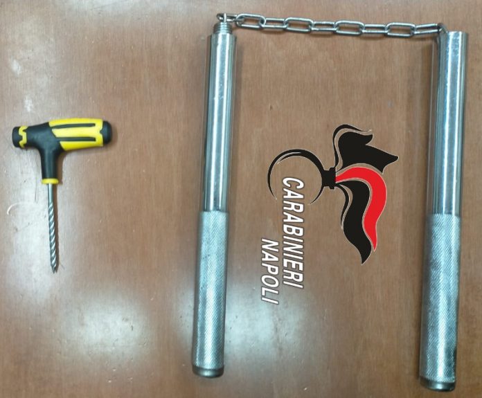Un “nunchaku” – arma anticamente utilizzata dai ninja – sotto la sella e un punteruolo nel borsello. E’ quanto i carabinieri hanno sequestrato, la scorsa notte, a San Sebastiano al Vesuvio (Napoli), a due minorenni di 15 e di 17anni.