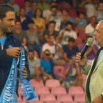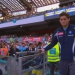 De Laurentiis è stato accolto da un grande boato e alle 19.41 è stato osservato un doveroso minuto di silenzio. Dopodiché è stata la volta di allenatore e soprattutto della sfilata della rosa del Napoli 2013/2014. I giocatori entrano in campo – ricoperto da tre grandi teloni che nascondono le gigantografie delle nuove maglie – chiamati uno ad uno. Gargano, rientrato dal prestito all’Inter, è stato fischiato, stessa sorte per Camilo Zuniga, a lungo corteggiato dalla Juventus. Dagli spalti echeggia il coro ”chi non salta juventino è”.