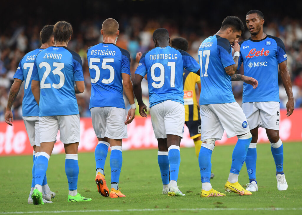 Spalletti punta su di loro con un 4-2-3-1, con Simeone punta e Raspadori trequartista, con Ounas e Politano sulle fasce. Prima del match il Maradona è palcoscenico per i nuovi acquisti che entrano uno alla volta a prendersi le ovazioni: Sirigu, Kim Min-Jae, Ostigard, Olivera, Ndombele, Simeone, Kvaratskhelia, Raspadori, super applauditi in uno stadio che vuole la corsa nella lotta scudetto ma anche soddisfazioni in una Champions che oggi offre il sorteggio dei gironi con gli azzurri in terza fascia. Acquisti che hanno rivoluzionato il Napoli, abbassando il monte ingaggi con gli addii di Koulibaly, Insigne e Mertens, ma con due vittorie convincenti che stanno dando ragione agli investimenti di De Laurentiis.