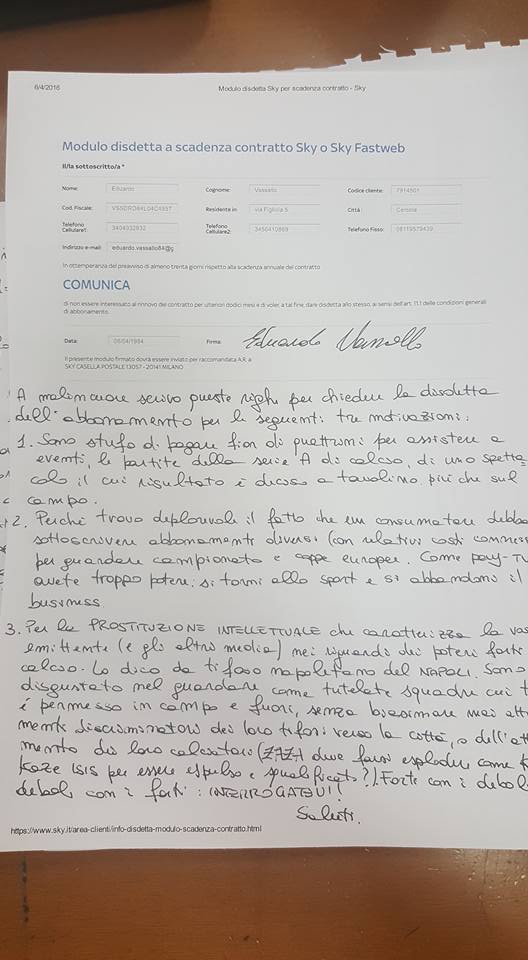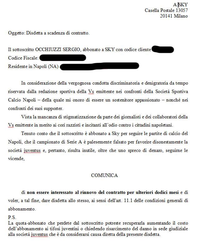 Ma non solo. Si perché da ieri, le pay tv di Mediaset e Sky stanno ricevendo una serie di lettere e mail di disdetta per annullare i propri abbonamenti da parte proprio dei sostenitori partenopei. Un modo di insorgere e difendere la propria squadra, colpendo proprio lì dove fa più male. Al portafogli di chi, tramite i diritti televisivi, resta l’introito maggiore del calcio italiano.
